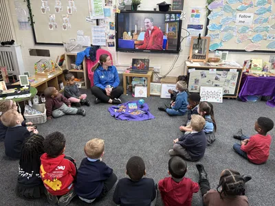 We had a lovely morning spending time with our Reading Buddy. They are in Year 5 and read us all a story, then we got to play with them which was lots of fun!