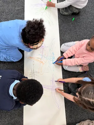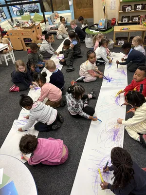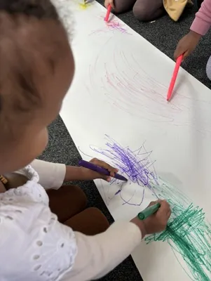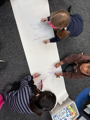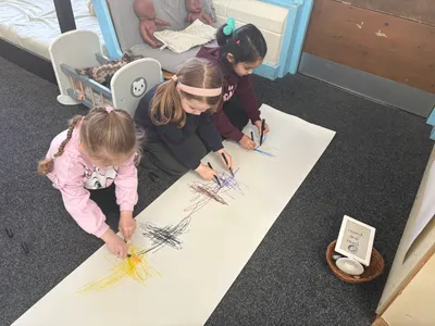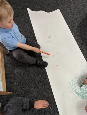 We learnt how to 'Squiggle' which is a really fun way to help us with our writing. We danced about and then made big squiggles on paper.