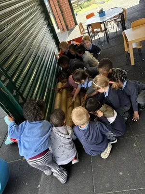 As part of our Phonics lessons, we went outside to try and make some different sounds. We used a clave to tap on the fence, the floor, the wooden slide and lots of other things. It was really good fun and we played this game for a very long time!