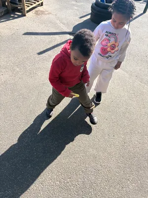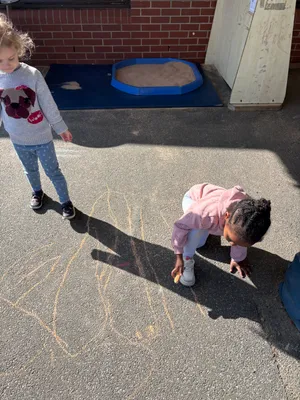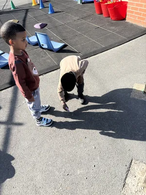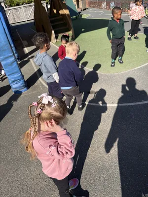 The lovely sunshine came out beautifully this week which allowed us to explore shadows. We learnt how to wave at our shadows and had a go at drawing around them with chalk.