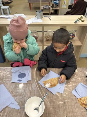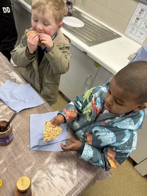 We had a very yummy snack today! We read 'The Runaway Pancake' then tried some pancakes.
