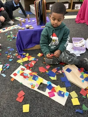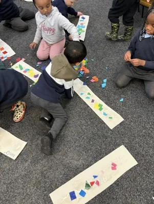 We revisited the Nativity story and spoke about what happened over Christmas. We looked at pictures of crowns and thought about why crowns are so special. We noticed they can have sparkly jewels on them so made some to help us retell the story.
