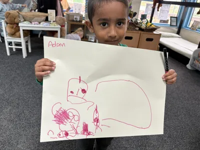 We all had a go at drawing a person. We spoke about what we needed to draw, made big movements in the air to practise, then started to draw.